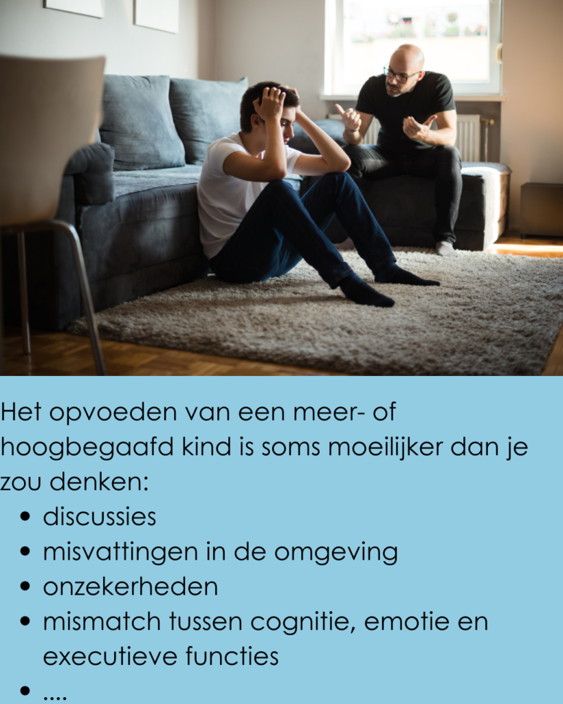 - onzekerheid door gebrek aan kennis over meer- en hoogbegaafdheid;